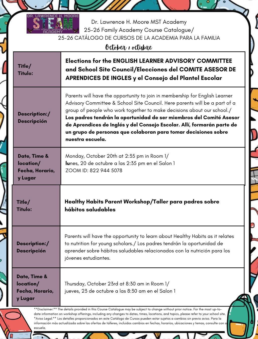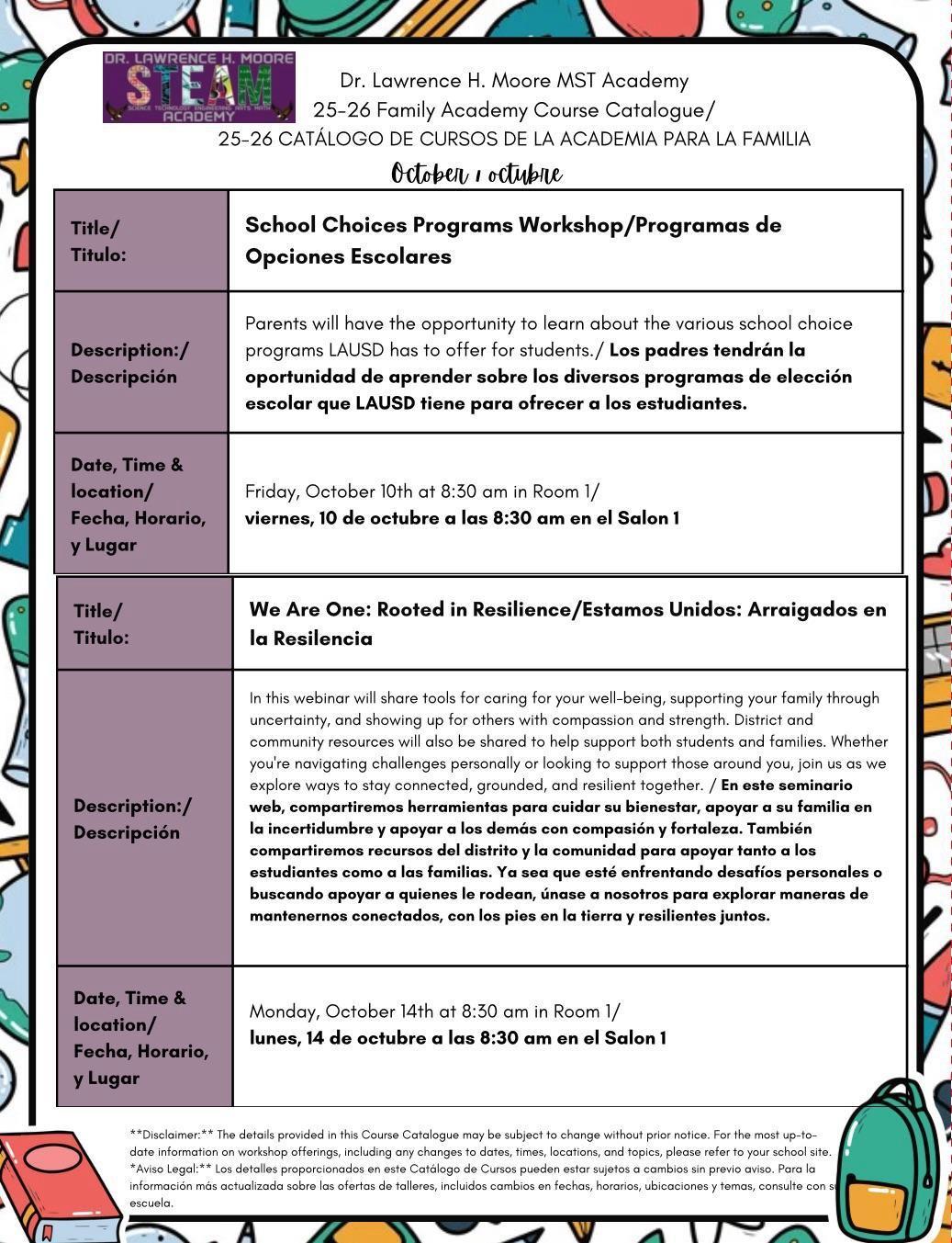 October Course Catalog/Catálogo de cursos del mes de octubre
